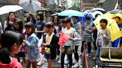 最後に「鳴竜」の声を聞いて見学は終了です。最後まで雨はやみませんでした。