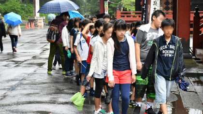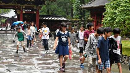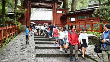 二荒山の見学を終え、今回はいつもの林間学園ではあまり見学しない輪王寺大猷院に行きました。徳川三代将軍、家光の墓所があるお寺です。
