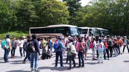 再びバスで竜頭の滝上の駐車場へ。滝を上から見学しました。