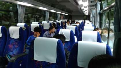 バスに乗って、いろは坂を下り、ホテルに向かいます。