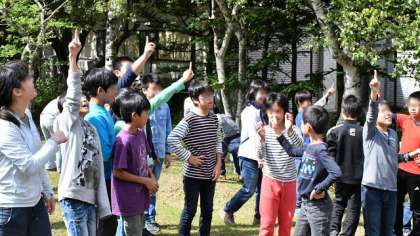 日光林間学園、23日(土)のハイライトシーンをお送りします。三本松園地で学年写真を撮ったあとの謎の行動。実はトンボが・・・
