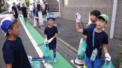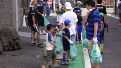 多摩川花火大会翌日のクリーン作戦。スポーツ少年団のメンバーも街中を中心にゴミ拾いに頑張りました。きれいな街、気持ち良いですね。