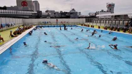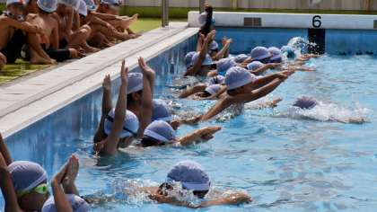 6日、今日は朝から気温、湿度とも高く残暑が厳しい一日になりましたが、水泳指導にはうってつけです。特に体の小さな1年生にとっては、肌寒いのは大敵ですから、今日はとても楽しそうに余裕をもって活動していました。1年生は水に慣れ親しむことを目標にしています。シーズン初めより、一人一人が水になじんで、ゆとりをもって水に入ることができるようになっています。