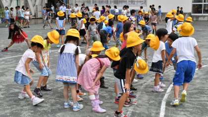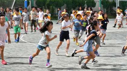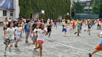 7日(水)中休み後半は今学期初めての「運動タイム」です。低学年は校庭で持久走、高学年はなわ跳びです。放送に合わせて準備体操をしてから元気に走りました。