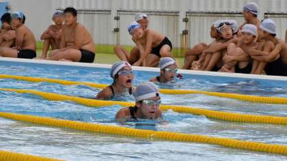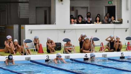 保護者の方もプールにかけつけて、子どもたちの奮闘を見守り応援してくださいました。子どもたちも友達に声援をおくりました。