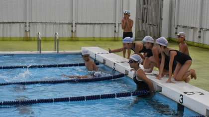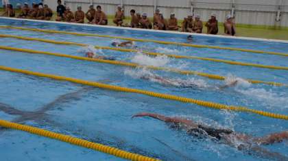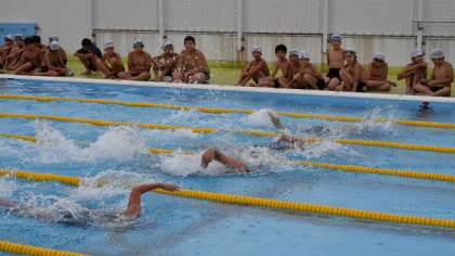 最後は代表選手によるリレーです。50m×4人と25m×8人の男女4チームによる、200mリレーを一緒に行いました。さすが代表、スタートは横一線です。リレーがすすむにつれて、少しずつ差が開いていきます。チームの仲間が懸命に応援します。