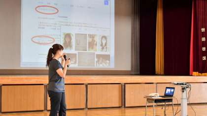 9日(金)3校時、保護者向け「ネットリテラシー醸成講座」を体育館で行いました。この講座は、インターネット機器等の普及に伴い、それらを安全に使用するリテラシーを子どもたちに身につけてほしいというねらいで、区がネット関連業者に委託して各校で実施しているものです。インターネット機器の現状や使用に関する留意点など、わかりやすく紹介し、注意を呼びかけました。参加した保護者の人数が少なかったのが残念です。わかっているようでも日進月歩のインターネット利用の世界です。知ることが子供の安全を守る一番の手立てです。講座で配布された「インターネット利用に関する啓発講座 資料」を、PTAのページからダウンロードできるようにしておきました。ぜひ目を通してください。