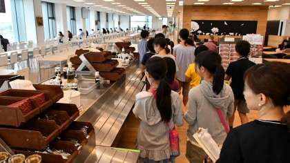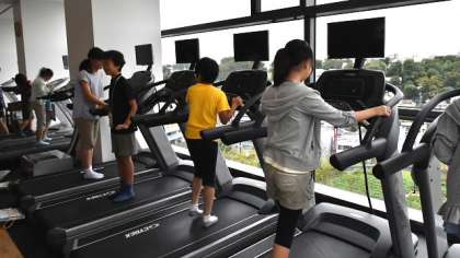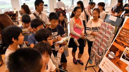 今回の企画は、昨年度も実施し、企業との調整などはPTA研修委員会の皆さんが、企業のCSR担当の方と綿密な計画をたててくださり、「カンパニーツアー」として実現したものです。前半はグループごとに社内を見学しました。社内のオフィスやレストランなどの福利厚生施設を案内していただき、ジムではランニングマシンの体験もしました。