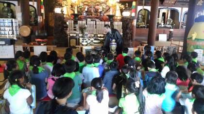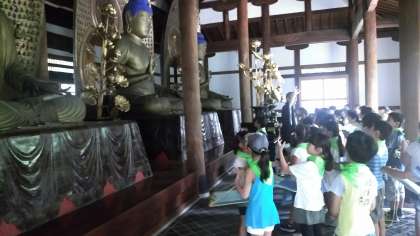 お坊さんの案内で、お堂の中に入り仏像を見学しました。