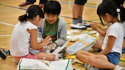 前回の学習では一人ひとり工夫して風をうけて走る工夫をして、速さを比べました。この日は、グループの中で一番速かった車を、チームとなって知恵を出し合い工夫し、より速く走るように改良する作業に取り組みました。一生懸命考え、いろいろな材料を使って改造しているようすです。
