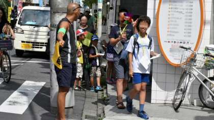 週休日は特に交通量の多い本校周辺の道路。子どもたちの安全確保のためにも、多くの保護者の皆さんが携わってくださいました。おかげさまで大きな事故や迷子もなく、ラリーが無事できました。