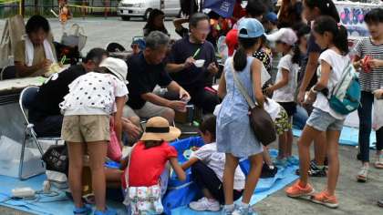 お店をまわって楽しむ子どもたちの様子です。地域のおまつりとして定着していて、毎年参加している子どもたちもいます。