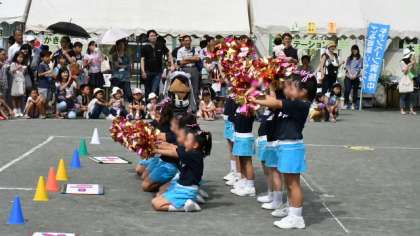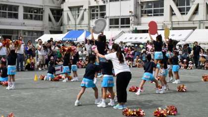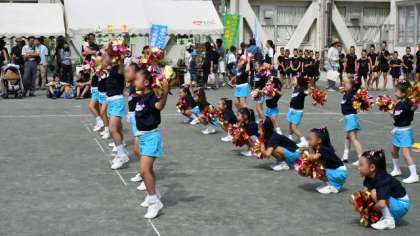 午後1時すぎからは、ステージで、用賀のチアリーディングサークルと本校のバトントワラーズが演技を発表しました。最初は用賀地区で活動しているチアリーディングが、かわいい演技を披露してくれました。