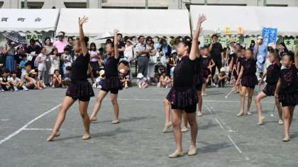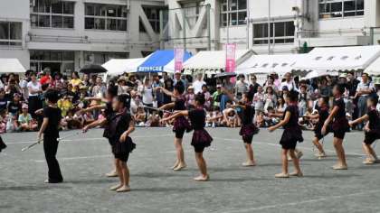つづいては、地域のイベントではおなじみになっている、本校のバトントワリングクラブ「二子トワラーズ」の演技です。