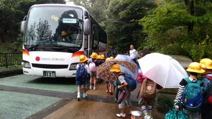 12時45分、予定より早くバスに乗り込み帰途につきます。遠足のようすは、後ほど「遠足ハイライト」でもお伝えします。