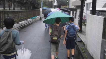 23日(金)午後、6年生が中学校体験で、「多摩川の学び舎」瀬田中学校に出かけました。天気はあいにくの雨でしたが、体育館に集まり、この日の意義や注意を聞いてから瀬田中学校へ向かいました。瀬田中学校体育館には、同じ学び舎の瀬田小学校の6年生も集まりました。