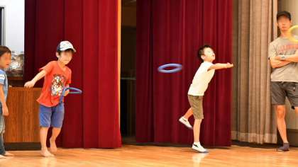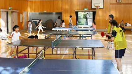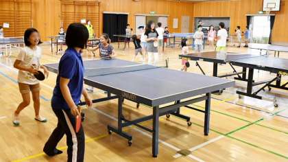体育館には卓球コーナーや輪投げのコーナーができて、いずれも名人が指導してくださいました。