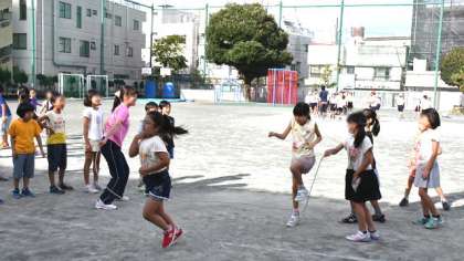 3分間の結果は、やはり4年生が1年先輩として3年生より回数を伸ばし、今日は200回以上跳んだ4年2組が1番よい結果でした。次回、正式にクラス対抗で競い合います。