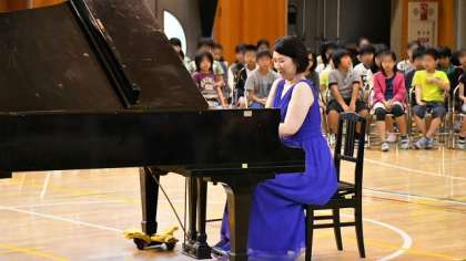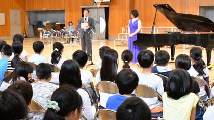 8日は土曜授業日。3・4校時、5・6年生が体育館でピアノコンサートで音楽鑑賞をしました。各方面でピアノ演奏者、指導者として活躍されている坂本知穂さんが、ショパンの曲を中心に演奏してくださいました。体育館はしばし、コンサートホールの雰囲気に包まれました。