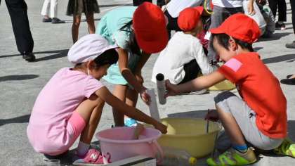 目標別にチームを組んで、いろいろ工夫したり話し合ったりしていました。道具も各家庭の協力で、様々なものを用意していました。