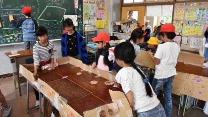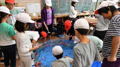 手作り感がとてもすてきなキッズフェスタ。自分たちで一生懸命考えた成果ですね。子どもたちの主体性ややる気を育てる活動です。
