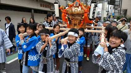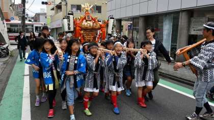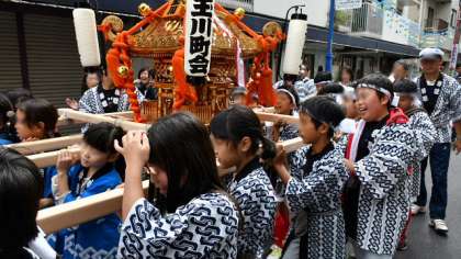 「わっしょいわっしょい」の元気な掛け声が商店街に響きました。