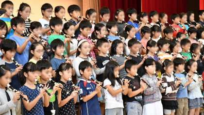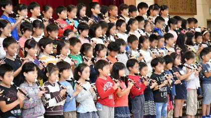 澄んだ歌声、一生懸命歌い演奏する姿がすてきでした。聞いている子どもたちも、声一つ出さずに聞いていました。まだ慣れないリコーダーの演奏もよく頑張りました。