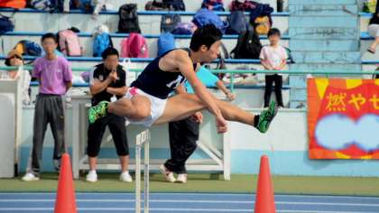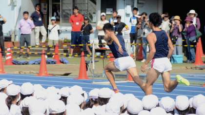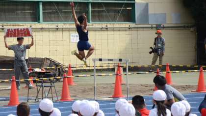 最初は大学陸上部員のリレー、走り幅跳び、ハードルの模範演技を見ました。目の前で見ると迫力が違いますね。