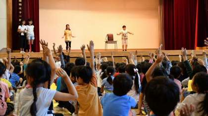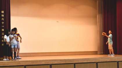 20日(木)朝は、体育館で集会委員会の企画で児童集会を行いました。「間違い探し」です。集会委員会が演技する二つの場面を見て、その違いをあてます。