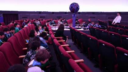 プラネタリウムには、各学校の校庭から見た周りの様子も映し出され、校庭で観察している雰囲気を楽しめました。月や太陽の動き、星や星座の話、宇宙旅行の模擬体験などのプログラムで、充実した学習ができました。