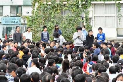 11月2日(水)朝、校庭で、後期委員会の委員長の紹介とメンバー紹介、委員会の活動の発表をしました。代表委員会代表の司会で、会の進行がスムーズに行われました。学校生活を支える大事な役割です。頑張ってください。