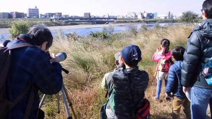 世田谷トラストのみなさんが持参した望遠鏡で、遠くの鳥もしっかり見せていただき、大満足の探鳥会でした。学校のそばに、こんな自然があることを、幸せに感じますね。