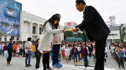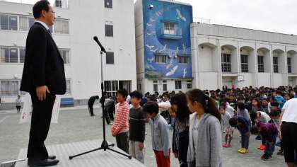 朝夕の気温がずいぶん下がってきました。7日(月)、朝会を校庭で行いました。いつものように、6年生のあいさつ当番がしっかりとあいさつを先導して、全員の「おはようございます」の元気な声が校庭に響き渡ります。校長講話は今月の「人格の完成をめざして「フェア」について話しました。フェアは日本語で言うと「正直」や「公正」という言葉があてはまります。人によって態度を変えたりすることもフェアではありません。そのようなことが「いじめ」につながります。という内容の話をしました。各教室でも、フェアな態度というのはどうすればよいのか考えるよう宿題を出しました。続いて表彰です。税について考える絵はがきコンクールの5年生入選者を表彰しました。