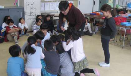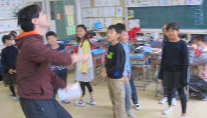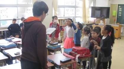 本日は、パブリックシアターの方をお招きして、演技指導をしていただきました。子どもたちの動きを引き出したり、迫力のある演技の手本を見せてくれたりして、子どもたちの表現力は、1時間で大きく向上しました。