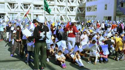 22日(火)、避難訓練を行いました。この日の想定は近隣民家からの火災発生です。