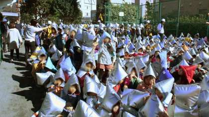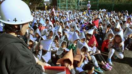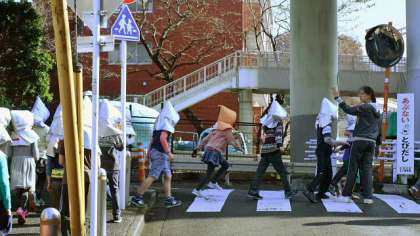 火が学校に迫ってきて危険なので、安全な場所に第2次非難をする訓練です。この日は花みず木公園に避難しました。