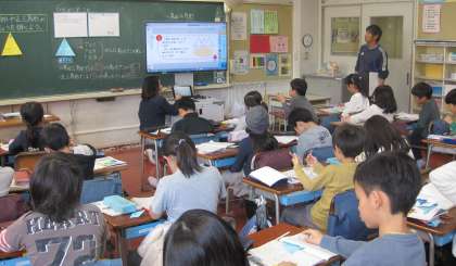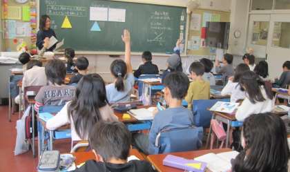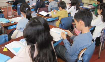 今日の課題は、「二等辺三角形や正三角形の角のとくちょうを調べよう」です。折って調べる方法で、角の大きさを調べました。授業の終わりには、2つの三角形の角の特徴について、しっかりと理解を深めることができました。