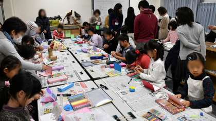 後半は、場所を調べ学習室に移して、クリスマスカード作りをしました。ボランティアの皆さんが材料を用意して下さり、みんな思い思いにすてきなカードを作りました。引率の保護者の皆さんも、子どもたちと一緒に楽しんでいました。今年度から学校図書館には図書館司書が常駐となり、土曜日の開館も行われています。また、このボランティアも発足して、図書館が充実してきました。皆さん、是非ご利用ください。