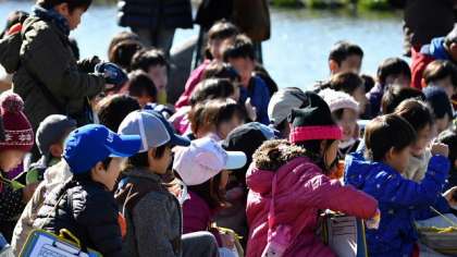 探鳥会を終えて、最初の場所に集合。お世話になった講師のみなさんにお礼を言って学校に戻りました。