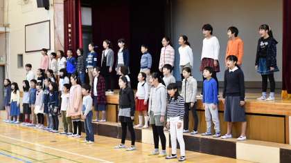 18日(日)に区の合唱交歓会に出演する合唱団が、体育館で7時45分から朝練習をしました。朝の冷たい空気の中で、ピンと張り詰めた雰囲気の中、子どもたちは美しい歌声を響かせていました。