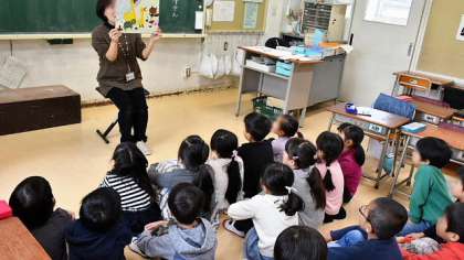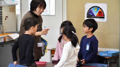 14日(水)、1年2組、道徳授業のようすです。「泳げないリスさん」というお話で、かけてもらってうれしい言葉というテーマで学習しました。担任が自作した紙芝居を読み聞かせした後、学習のてだてとしてロールプレイングをとり入れました。子どもたちが登場人物になったつもりで演じて、投げかけられた言葉について考えます。