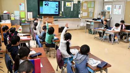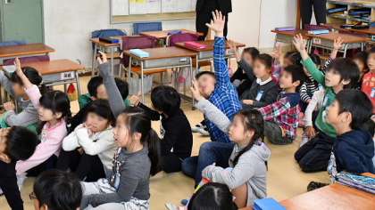 子どもたちは、とても積極的に発言していました。ワークシートや大型テレビも効果的に使って、充実した学習となりました。