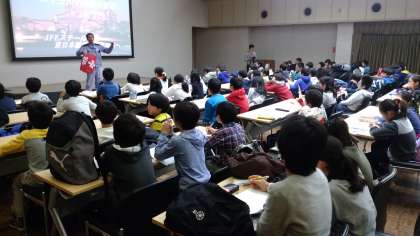 工場内のホールで製鉄所の歴史や施設、鉄ができるまでを学習します。