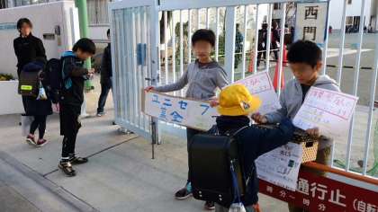 16日(金)、ユニセフ募金最終日。今日はひときわ冷え込みが厳しかったのですが、代表委員が東門と西門前に出て、募金活動をしました。家庭向けに協力のお願いプリントを配布したので、今朝は多くのみなさんが協力してくださいました。