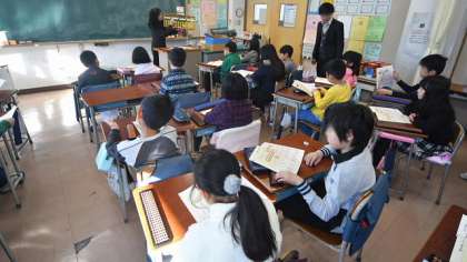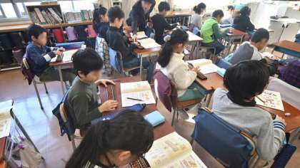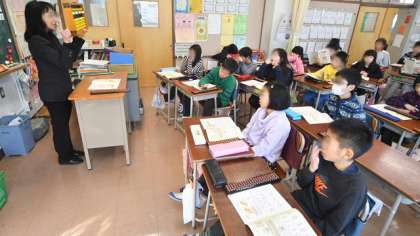 4年生は昨年もそろばんの先生に教わっています。思い出しながら、計算にチャレンジです。