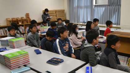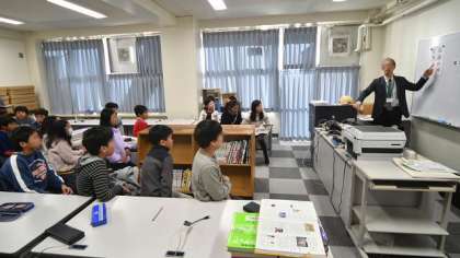 17日、4年生は百科事典を発行している出版社からゲストティーチャーを招いて、百科事典の使い方を2時間にわたってレクチャーしていただきました。百科事典をたくさん持ってきていただき、実施にそれを使いながらの学習です。