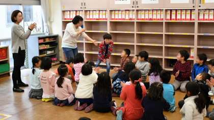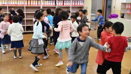 最初のうちはモジモジしていた子もいましたが、動いたり声を出したりしているうちに、だんだん表現が豊かになっていくようすを見ることができました。この学習は19日にも行われ、1年生の全クラスが体験しました。