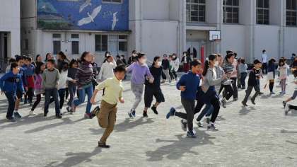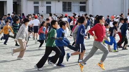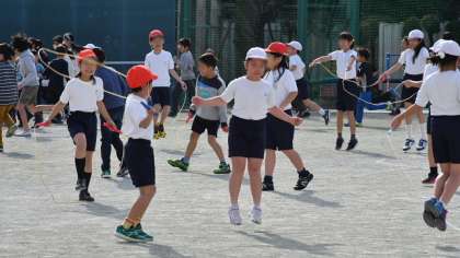 19日、まだインフルエンザによる学級閉鎖が1クラスありましたが、元気な子も多く、みんなで気持ちの良い日差しをあびて、運動タイムに参加して、校庭の周回コースを走ったり、縄跳びをしたりしました。病気の予防には、適度な運動も必要です。