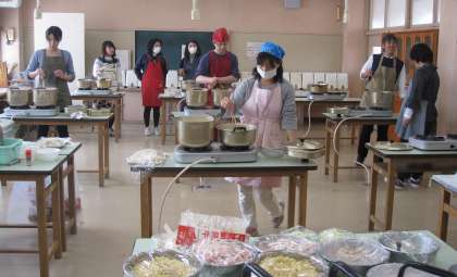うどんを茹でるのは、ふたこのよいこサポート隊のみんさん、保護者、教員、BOP職員で行いました。10分程で美味しいそうなうどんが茹で上がりました。