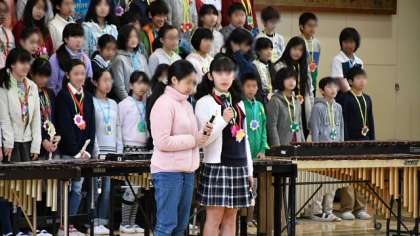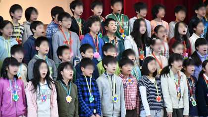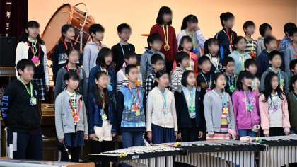 代表による6年生からのお礼の言葉の後、6年生全員の合唱です。